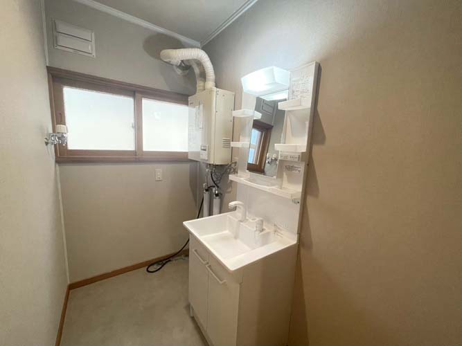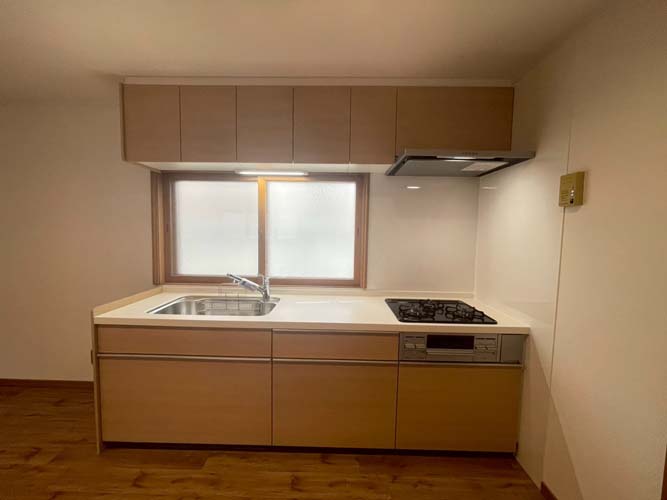 【リフォーム内容】≪水廻設備≫◆システムキッチン交換◆トイレ交換◆洗面化粧台交換◆ユニットバス交換≪その他リフォーム≫〇フローリング貼替〇クロス全室貼替〇クッションフロア貼替〇巾木交換〇シューズボックス交換≪設備関係≫■洗濯混合栓交換■レジスター取付■美装クリーニング■コンセントスイッチ交換■ボイラー移設交換■ダウンライト新設